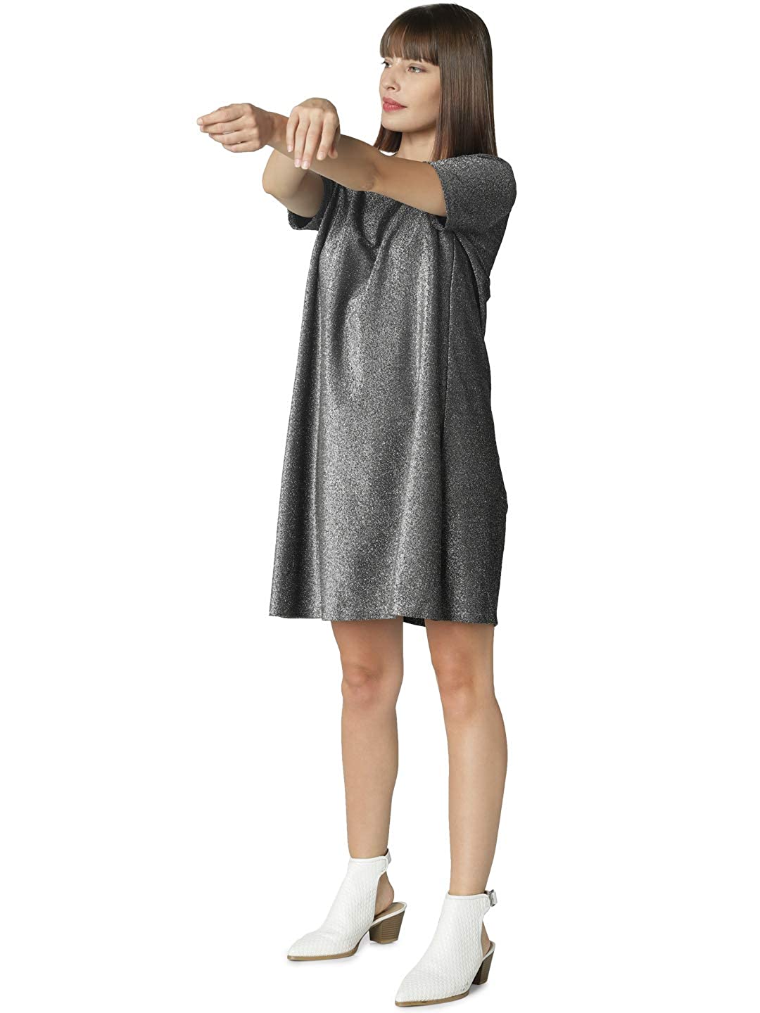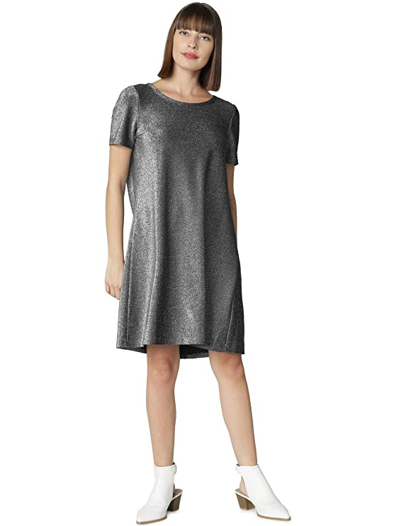 VeroModa Women’s Synthetic a-line Knee-Long Dress (207721201_Black_Medium)